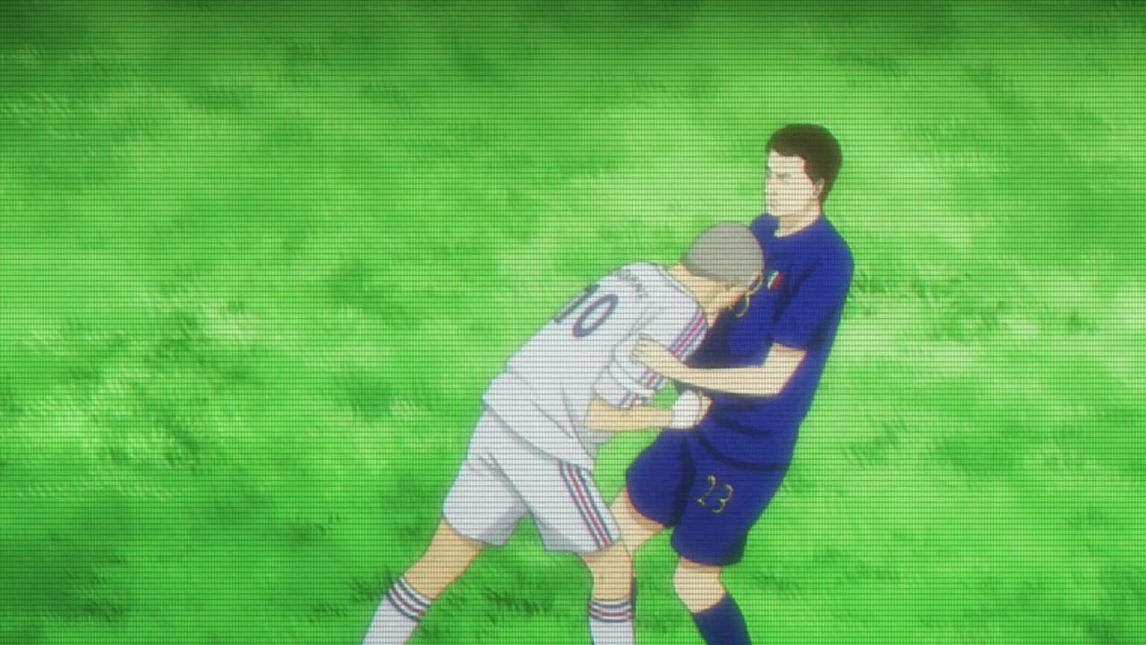 And was immediately greeted with an anime version of what I still consider one of sports’ most hilarious moments: the Zidane headbutt. The opening hook where the main character compared himself and his brother using sporting events was very effective, and created a characteristic of him that was immediately accessible to a fairly general audience. From there, the first episode seized on Mutta’s characterization and used it to swiftly build a character that was at once competent and awkward, downcast and hopeful. In other words, he experienced the range of emotions most people go through when facing important life decisions. The best directors make the best intros, and this was one of ‘em.