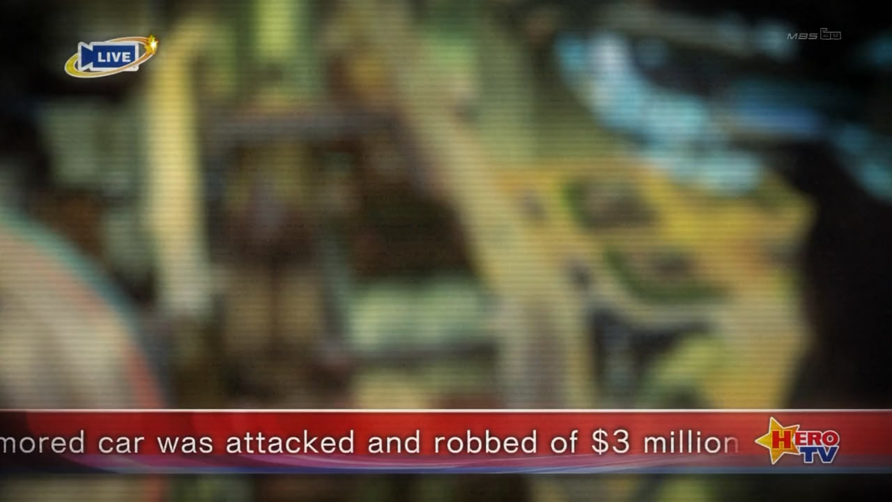 The newscaster brings up superheroes, and the fact that this program is a live broadcast of hero activities.