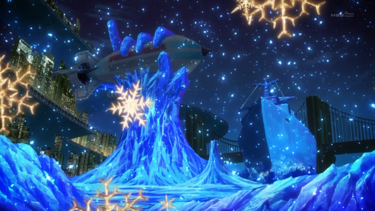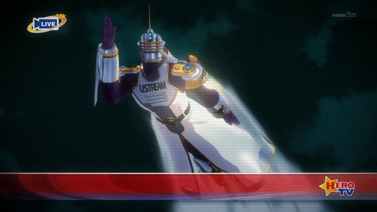 So, to recap, in the space of 10 minutes, Tiger and Bunny teaches you no less than 50 distinct facts about its characters and setting, and does it while maintaining one fluid action scene. That’s darned impressive. Can you imagine another intro that comprehensible and instructive? More to the point, can you imagine another intro that instructive which manages to be jaw-dropping awesome at the same time? That’s the power of the chase scene as an introductory tool, and the reason it should really be used more often than it is; I can only recollect 7 such introductions from memory. Just know that whichever Spring 2013 show decides to pull one of these will have me scrambling to climb on its bandwagon.