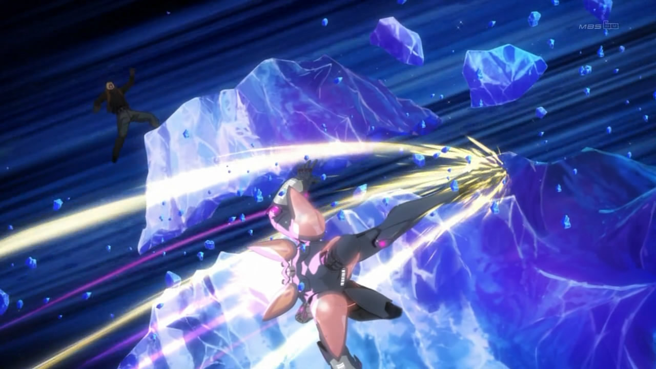 To me, the answer is obvious and almost always the same: put together a chase scene. Nothing does as many necessary introductory things at once. It has the main cast chasing after something or someone, showing in their actions what 20 lines of dialogue often fails to convey. They use their skills and abilities in the process, introducing you to the power system of the world or the badassery of the main characters, or both. It takes place in the main setting, giving the audience a quick-and-dirty whirlwind tour. Above all, it’s dynamic and visual, like anime should be; it gives the viewers a chance to dive right into the action. Nothing gives a director a chance to show off more than a set that’s always in motion. It might not be the easiest feat to pull off, but a successful chase scene inevitably sets the stage for a dazzling performance (though the performance *may* not live up to that in the long run).