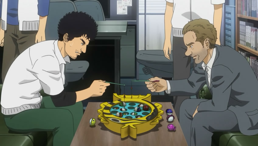 Space Brothers continuously comes off as an incredibly well-researched show. That’s not just in the macro sense (knowing which NASA agencies handle what, and the order in which astronaut training proceeds) but in the very micro sense as well; this episode was a great window into the minds of people smack in the middle of a design process trying to solve five problems at once.