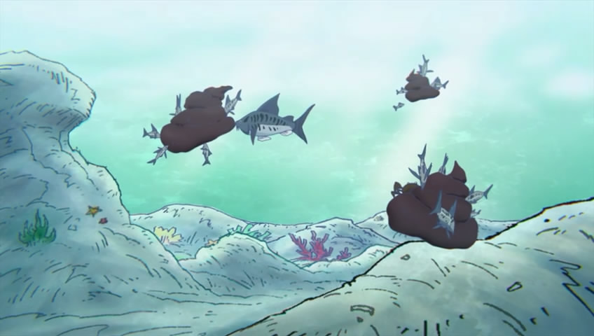 And hey, if it lets them draw a macross-esque underwater chase, who cares? That it made non-terrible poop jokes was another unexpected bonus. I think there’s something to taking the “I’m about to be eaten” thing a little too far, because there’s another sweet spot out there Muromi-san just hit.