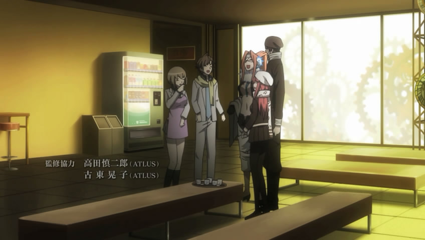 From the little gag early on in the episode where the characters introduced themselves (and then laughed at how cheesy it was) to the scene a moment later where their exchaning numbers led to a bunch of dead face clips to the scene where Kanno faced down death with boredom, this installment of Devil Surivior 2 was packed with something most previous episodes have lacked – self-awareness. It lost some of that by setting up a final battle that Hibiki was obviously going to show up at the very last minute for. But he did only show up after a few characters had died, so it wasn’t a 100% predictable scenario.