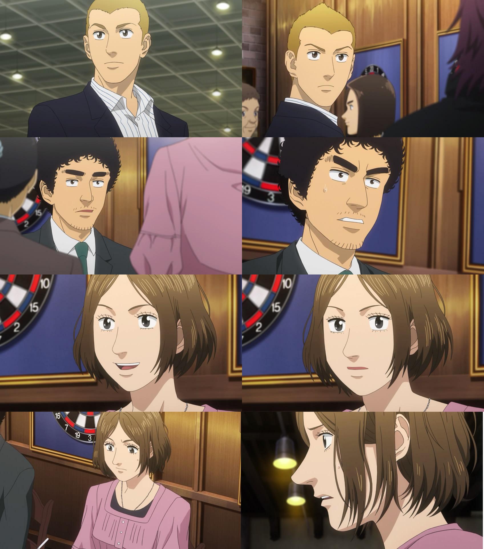 Of course, then the second layer of the fakeout kicked in after the checkup seemingly revealed everything was fine. So we were off to the pub to see Mutta show off and Serika geeking out over getting to meet one of her childhood heroes. Props to anyone who remembered Serika’s father’s disease before the first flashback. I certainly didn’t. She realized what was happening to Sharon even faster than I realized what was happening to her; once again, there are many benefits to having an older cast this capable.