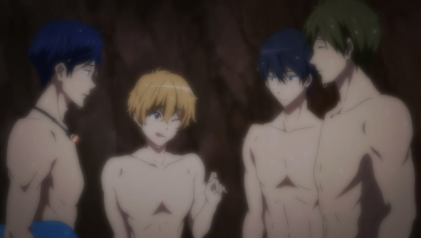 Showing is superior to telling, but not all showings are created equal. One of the ways to tell a high-class pro director from a replacement-tier one is the way they make a situation clear with the first snap of the camera. Case in point: those first 3 seconds of that shot after Haru saved Makoto. The way one set of feet was dragging and the other was limp immediately spelled out what was going down. Mix in effective not-use of music (just rain and heavy breathing), and you get an immediate impression of the state Makoto was in. It was a bit of imagery that felt like something adapted from an award-winning manga, except Free is a novel adaption that had to make its own storyboards.