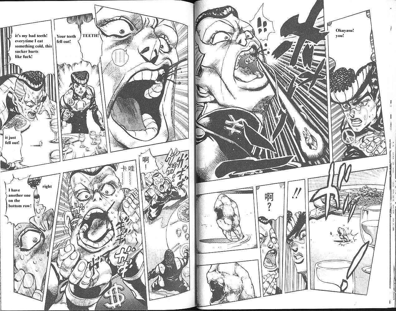But it doesn’t just look delicious, or even just taste delicious. It’s also a medical miracle that causes Okuyasu, the character eating, to lose two bad teeth, then regrow them in a matter of seconds.