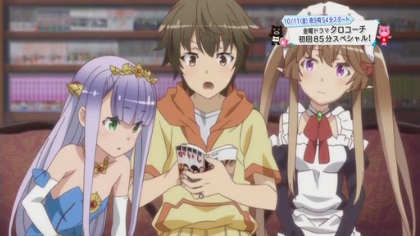 The fundamental appeal of Outbreak Company is one with a pretty good chance of striking a chord with anyone who’s ever had to get a friend started on anime, or convince people it wasn’t all one cliched genre. Thanks to the fact that it’s executing with minimal forced fanservice, what might become the saving grace of a lesser series becomes this show’s cold-steel core; watching a smart fanboy import culture with the full faith and credit of the Japanese government behind him. In essence, it’s a show that focuses on all the cool things happening in manga and anime (more manga so far) as a whole, respecting the power of both everlasting classics and modern-day megahits. For as low as I was on the show going in, I have to say it’s been executing its premise in more or less the best way possible.