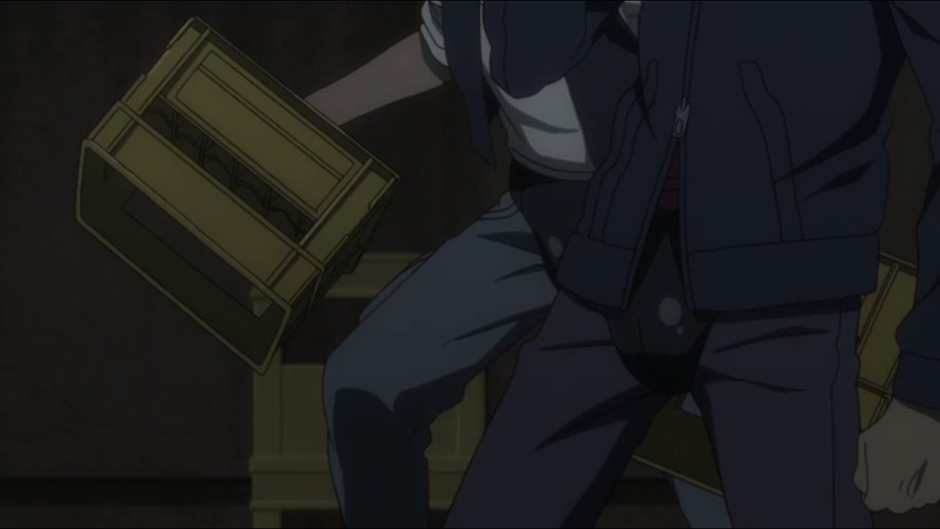 While last week’s episode had the definite flavor of watching a bunch of unknown plot elements being tossed out (Flamenco girl’s more violent bent, Masayoshi’s resulting disillusionment, Goto’s evolving role on the sidelines), this one brought them from a bunch of purely isolated threads into more of the classic dice-in-a-bowl setup; the guys are becoming much more aware of their role in this phenomenon (more on that in a minute), she’s taking some serious lumps as people used to street fights cotton on to her methods. The moment with the external jock straps was a great paradigm shift that way, and supremely ridiculous at the same time. To say nothing of how she dragged the rest of her idol unit into things.