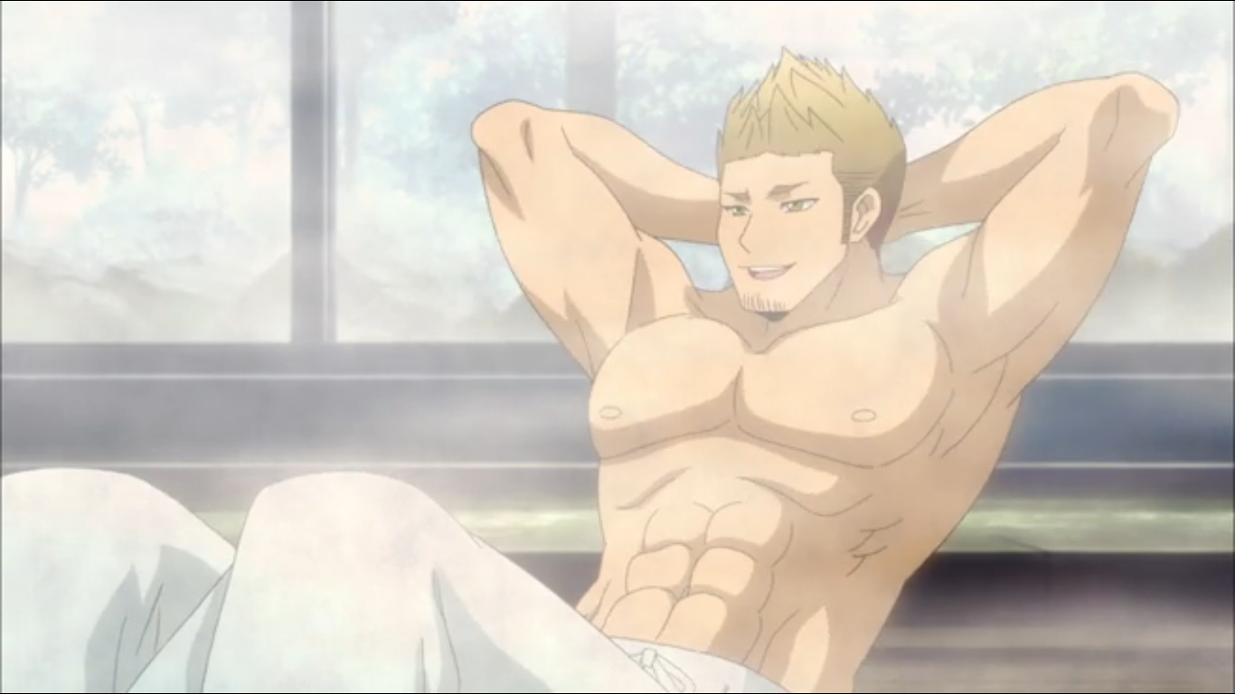 Speaking of which, Hamatora! In reality, the debate over Kishi Seiji’s career is a lot like the debate about Peyton Manning in cold weather. Minds have been made up to the extent that everything gets interpreted through the lens of that bias, whether that’s the “comedy director turned swiss-army-knife” or the “Uwe Boll of anime”. As a 3-star mamber of the man’s fan club, I’m admittedly not qualified to offer unbiased commentary. That said, the hot springs episode came on full-force and was pretty sweet as a result. If the voice-acting was any less cheesy when the guy was doing abdominal-showcase situps for 45 consecutive seconds, it might have been cause for a ragequit. But, the cast solidly embraced how silly the idea was and made it work. The series isn’t really a fantastic mystery or battle series, but it’s great at being silly and it knows that it is.