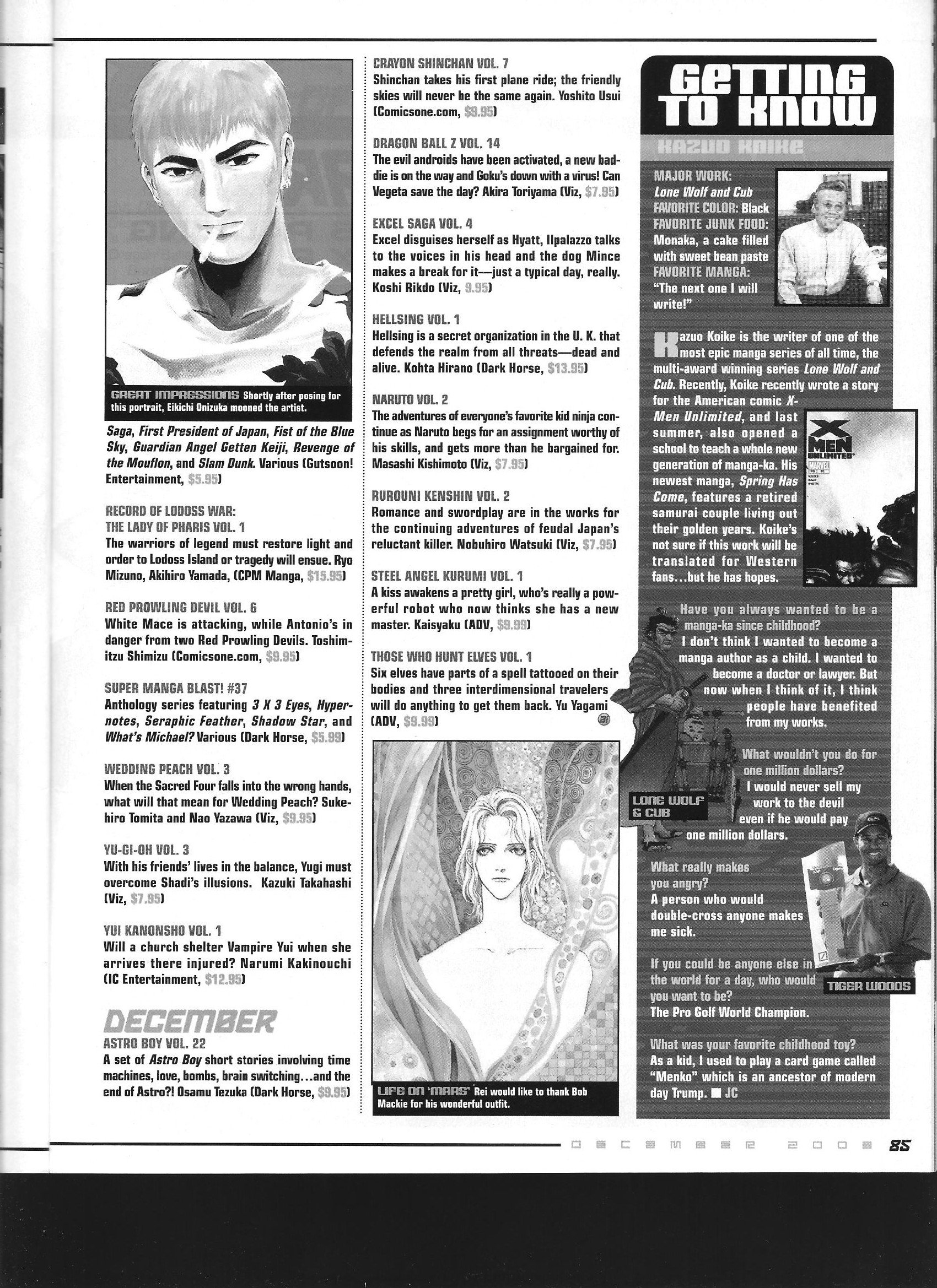 Via Anime Insider: Kazuo Koike (December 2003) Posted on June 24, 2014 by torisunanohokori A very, very short Kazuo Koike interview (made more so by the fact that the interview is only half the sidebar). Share this: Click to share on X (Opens in new window) X Click to share on Facebook (Opens in new window) Facebook Like Loading...