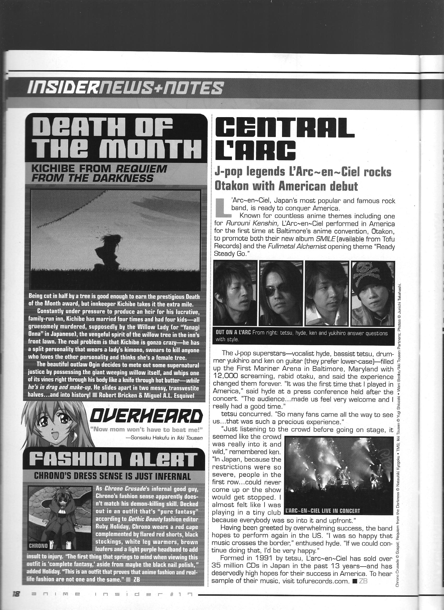 Via Anime Insider: L’Arc en Ciel (December 2004) Posted on June 28, 2014 by torisunanohokori Musicians L’Arc en Ciel talks about the differences between their performances in the US versus in Japan. Share this: Click to share on X (Opens in new window) X Click to share on Facebook (Opens in new window) Facebook Like Loading...