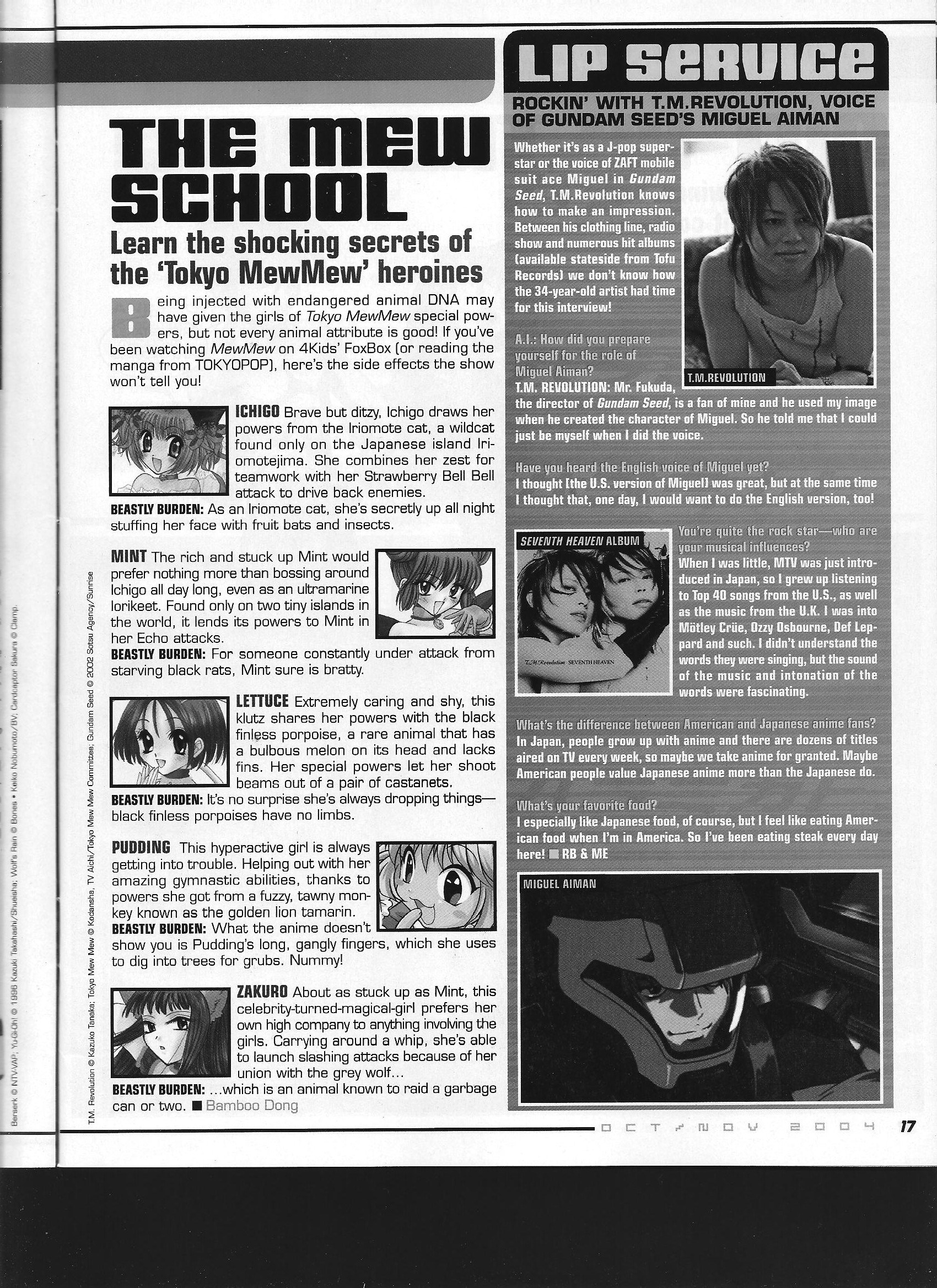 Via Anime Insider: TM Revolution (October 2004) Posted on June 28, 2014 by torisunanohokori Musician TM Revolution talks about voicing Miguel Aiman for Gundam Seed and his favorite musicians. Share this: Click to share on X (Opens in new window) X Click to share on Facebook (Opens in new window) Facebook Like Loading...