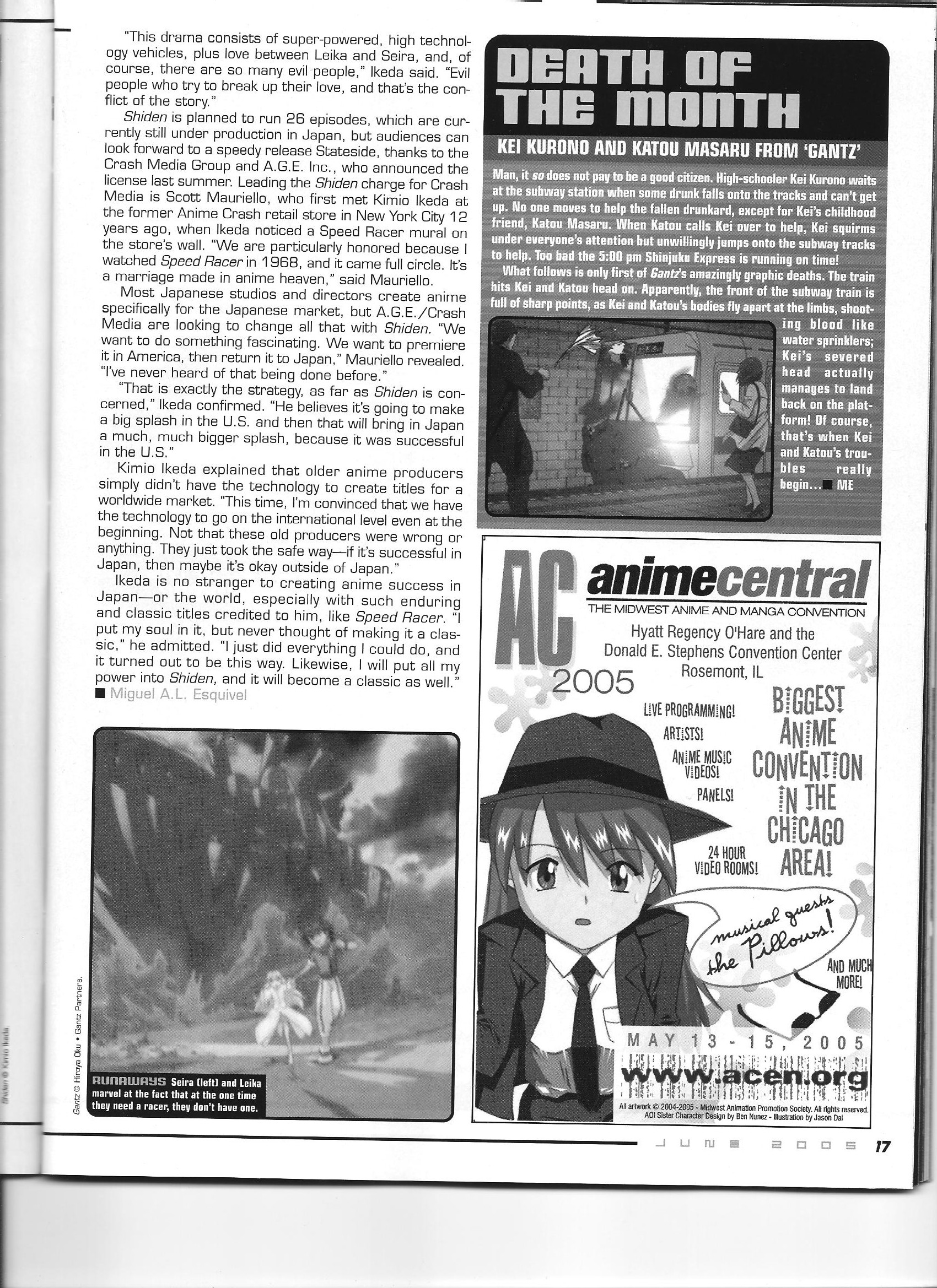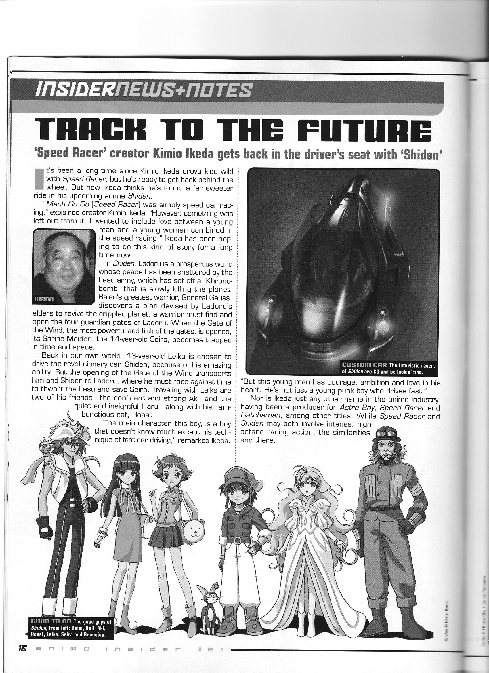 Via Anime Insider: Kimio Ikeda (June 2005) Posted on July 6, 2014 by torisunanohokori Late producer Kimio Ikeda talks about his plans to premiere the as-yet unaired Shiden with the now-defunct Crash Media Group. *pours one out for what might have been* Share this: Click to share on X (Opens in new window) X Click to share on Facebook (Opens in new window) Facebook Like Loading...