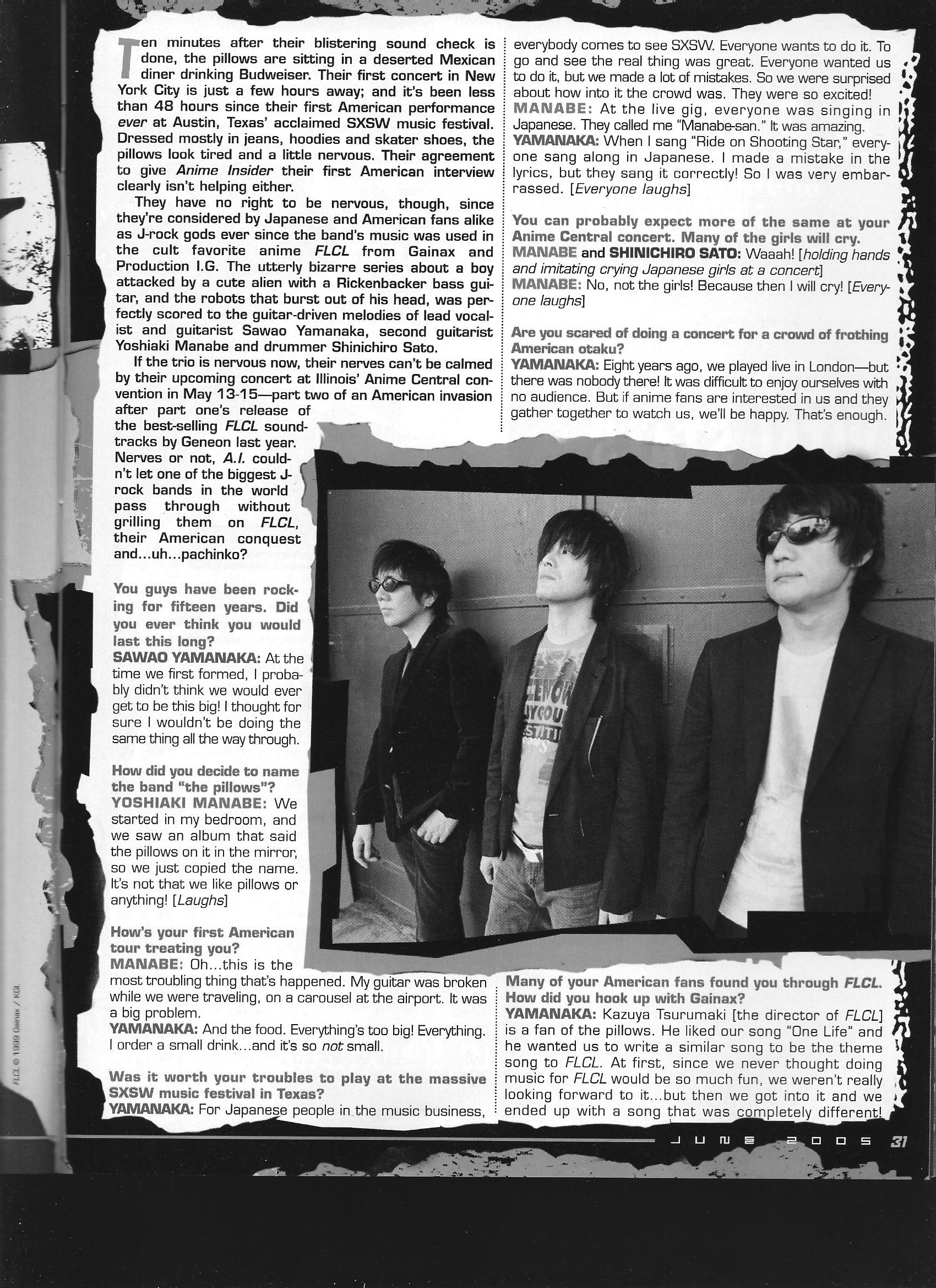 [Purportedly] the first-ever English interview with popular band The Pillows. They talk about their favorite bands and their rise to popularity.