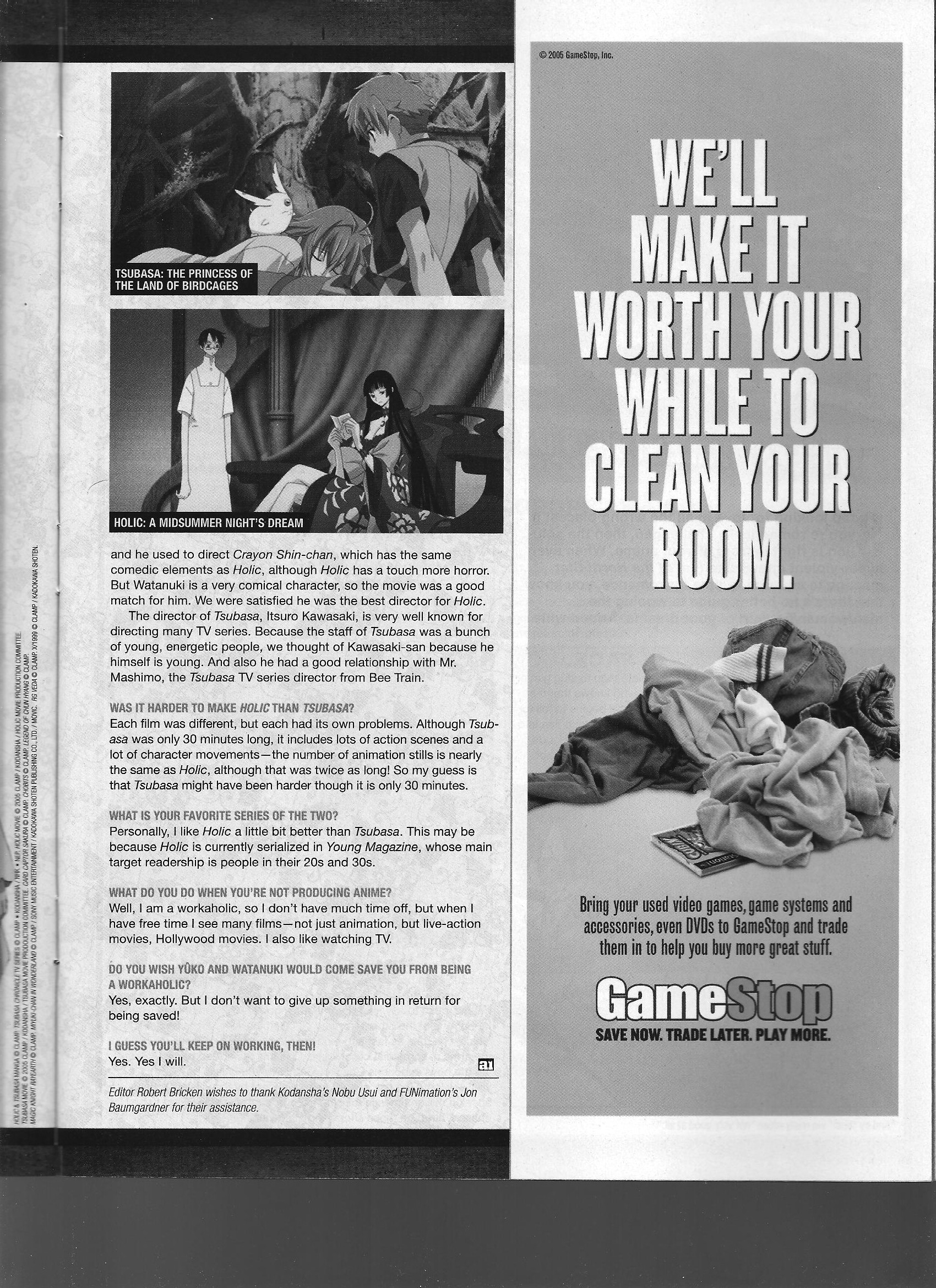Producer Katsuji Morishita discusses working on Tsubasa Reservoir Chronicle and xxxHolic as two halves of a double feature project. Two particularly interesting tidbits here (among a few others):