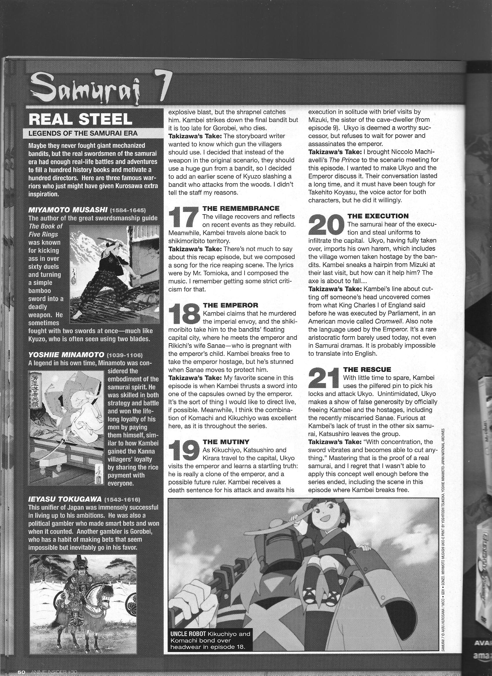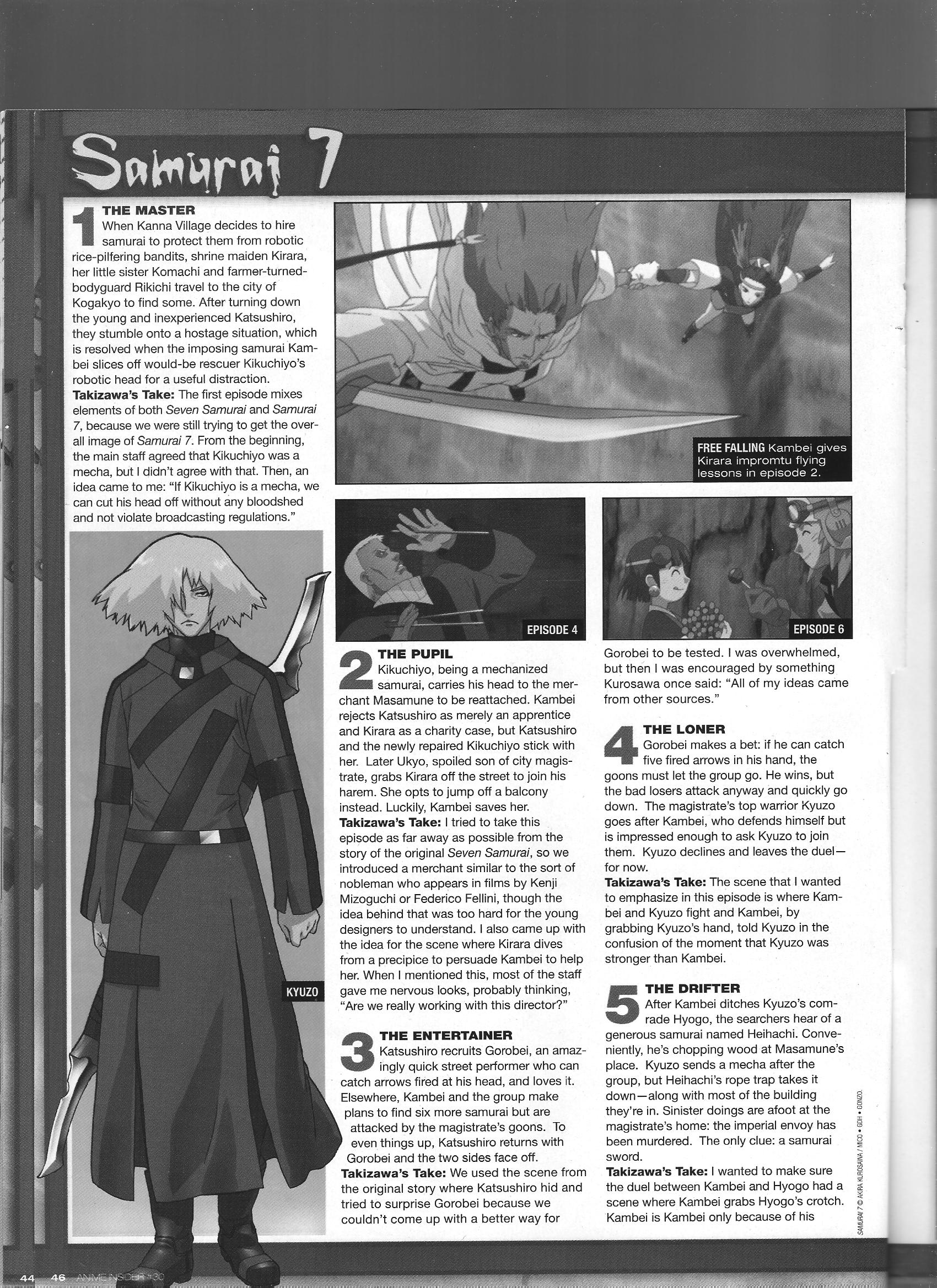 Via Anime Insider: Samurai 7 Episode Commentary (March 2006) Posted on July 18, 2014 by torisunanohokori Director Toshifumi Takizawa shares brief thoughts on each episode of Samurai 7. Share this: Click to share on X (Opens in new window) X Click to share on Facebook (Opens in new window) Facebook Like Loading...
