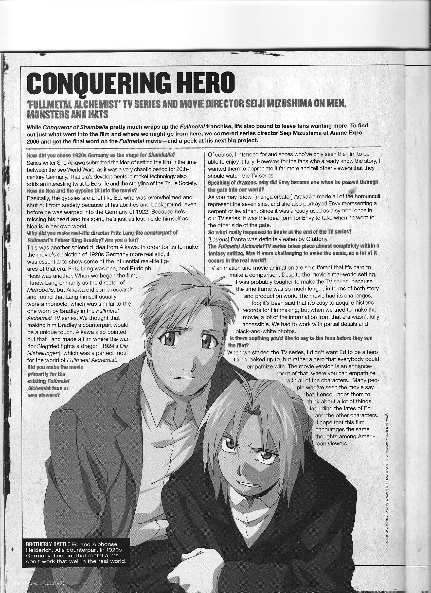 Seiji Mizushima is interviewed about the Fullmetal Alchemist series. Again.