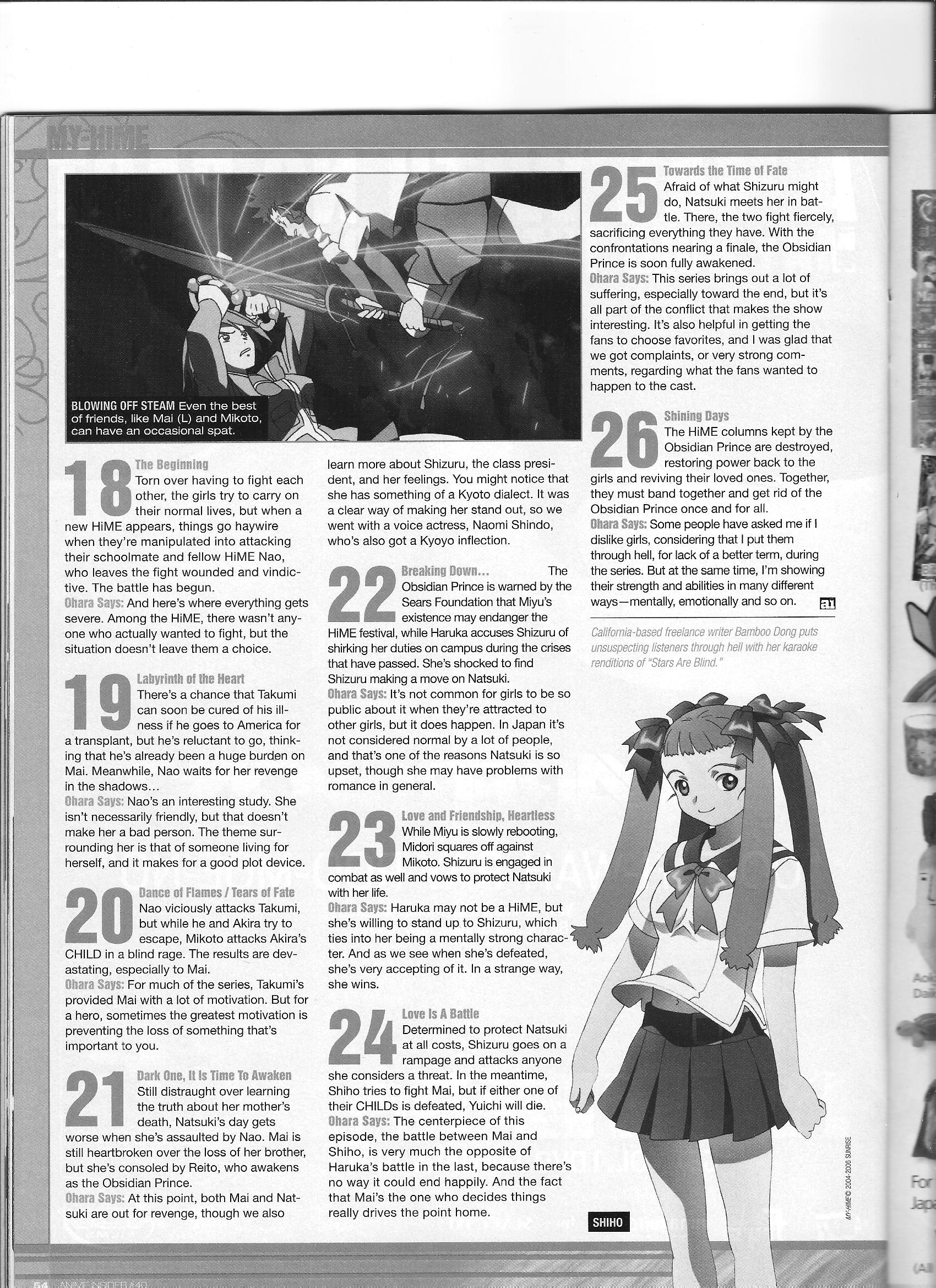 Via Anime Insider: Mai-Hime Episode Commentary (January 2007) Posted on August 6, 2014 by torisunanohokori Director Masakazu Ohara provides comments on each episode of the Mai-Hime TV series (except 12 and 15). Share this: Click to share on X (Opens in new window) X Click to share on Facebook (Opens in new window) Facebook Like Loading...