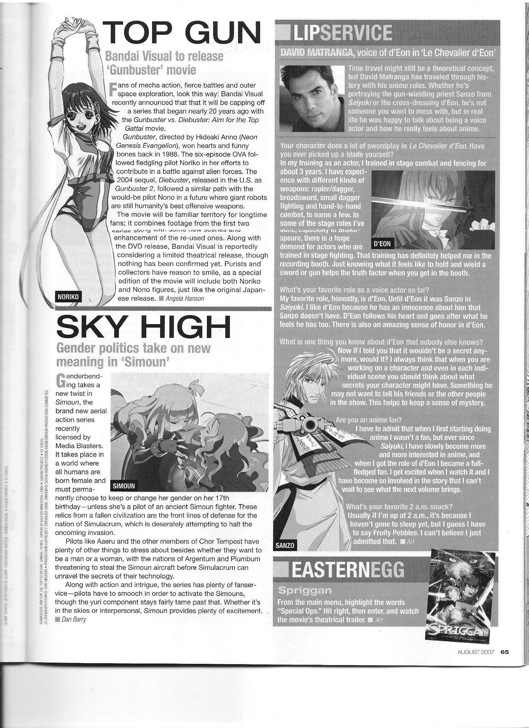 Via Anime Insider: David Matranga (August 2007) Posted on September 20, 2014 by torisunanohokori A short interview with US VA David Matranga. Share this: Click to share on X (Opens in new window) X Click to share on Facebook (Opens in new window) Facebook Like Loading...