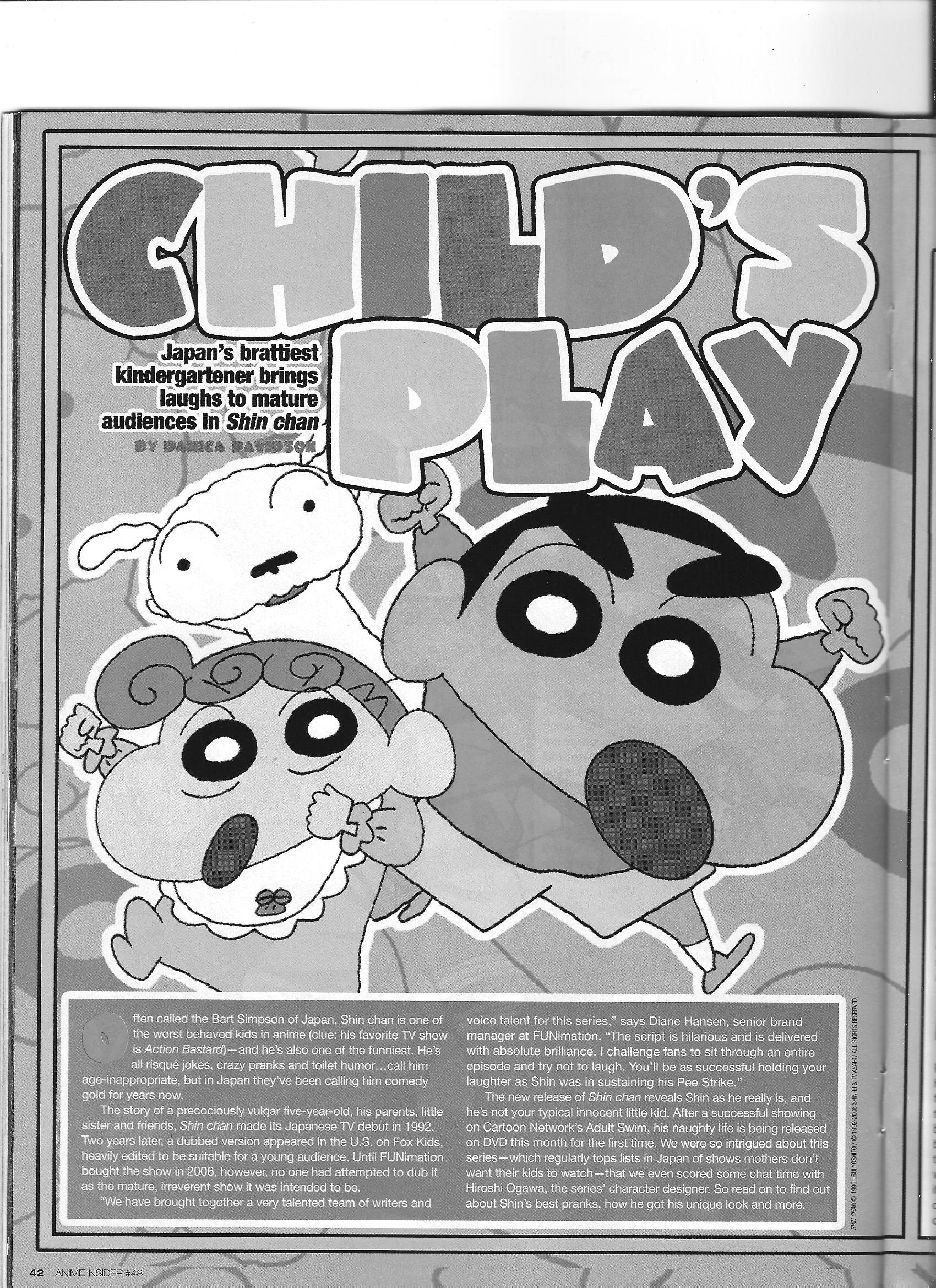 Via Anime Insider: Hiroshi Ogawa (August 2007) Posted on September 27, 2014 by torisunanohokori An article on Crayon Shin-chan that includes an interview with Hiroshi Ogawa, who didn’t think the show would last a year. Share this: Click to share on X (Opens in new window) X Click to share on Facebook (Opens in new window) Facebook Like Loading...