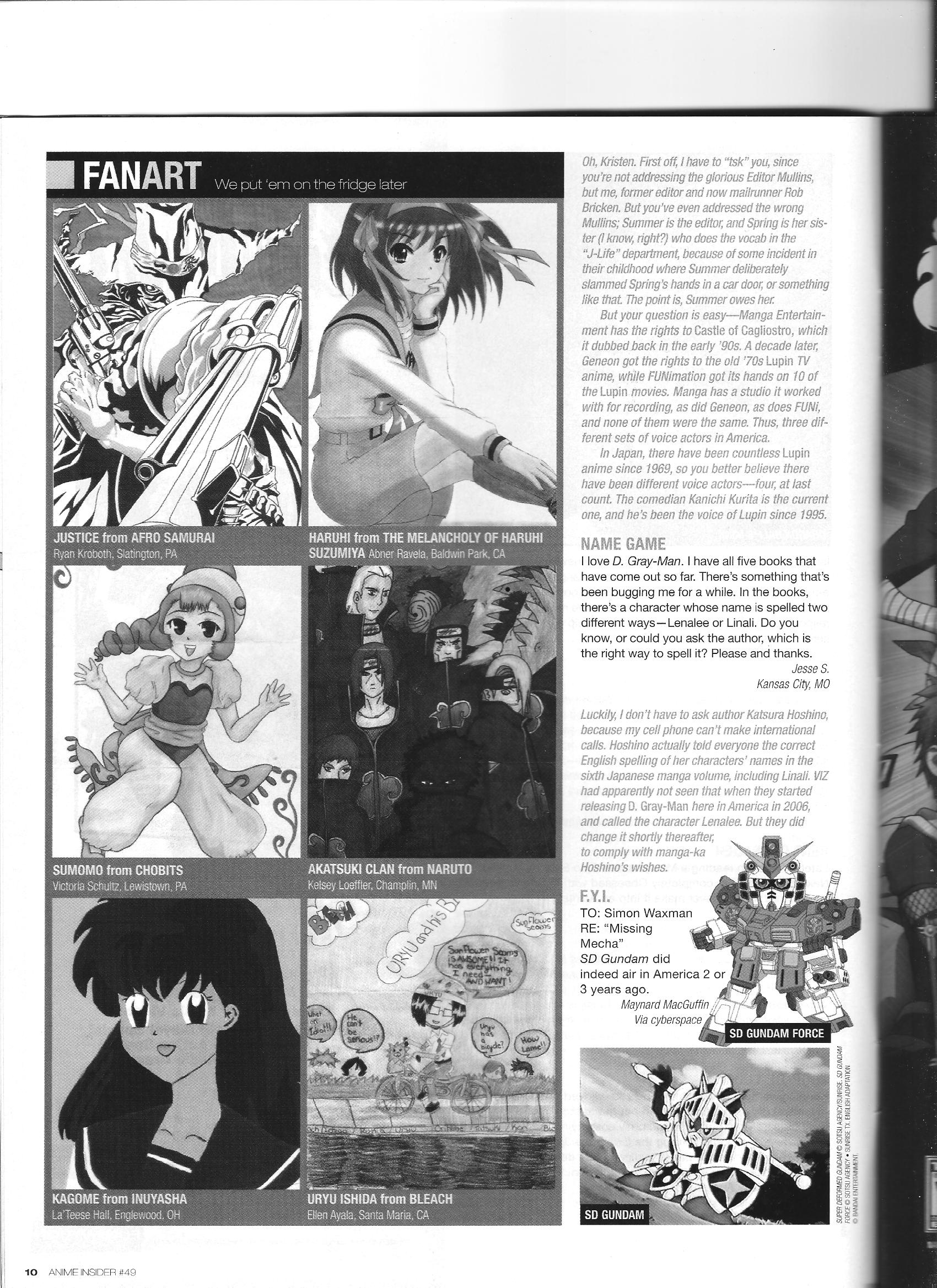Via Anime Insider: Reader Mail (October 2007) Posted on October 21, 2014 by torisunanohokori A reader mail segment that includes a discussion of the merchandise-based reasons behind the Zoro/Zolo name change in One Piece localizations. Share this: Click to share on X (Opens in new window) X Click to share on Facebook (Opens in new window) Facebook Like Loading...