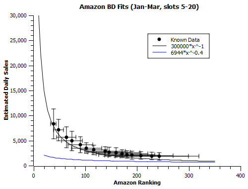 Secondly, it’s impossible to do the above without basically casting aside amazon toplist data – it’s way outside the acceptable error bars on this graph: