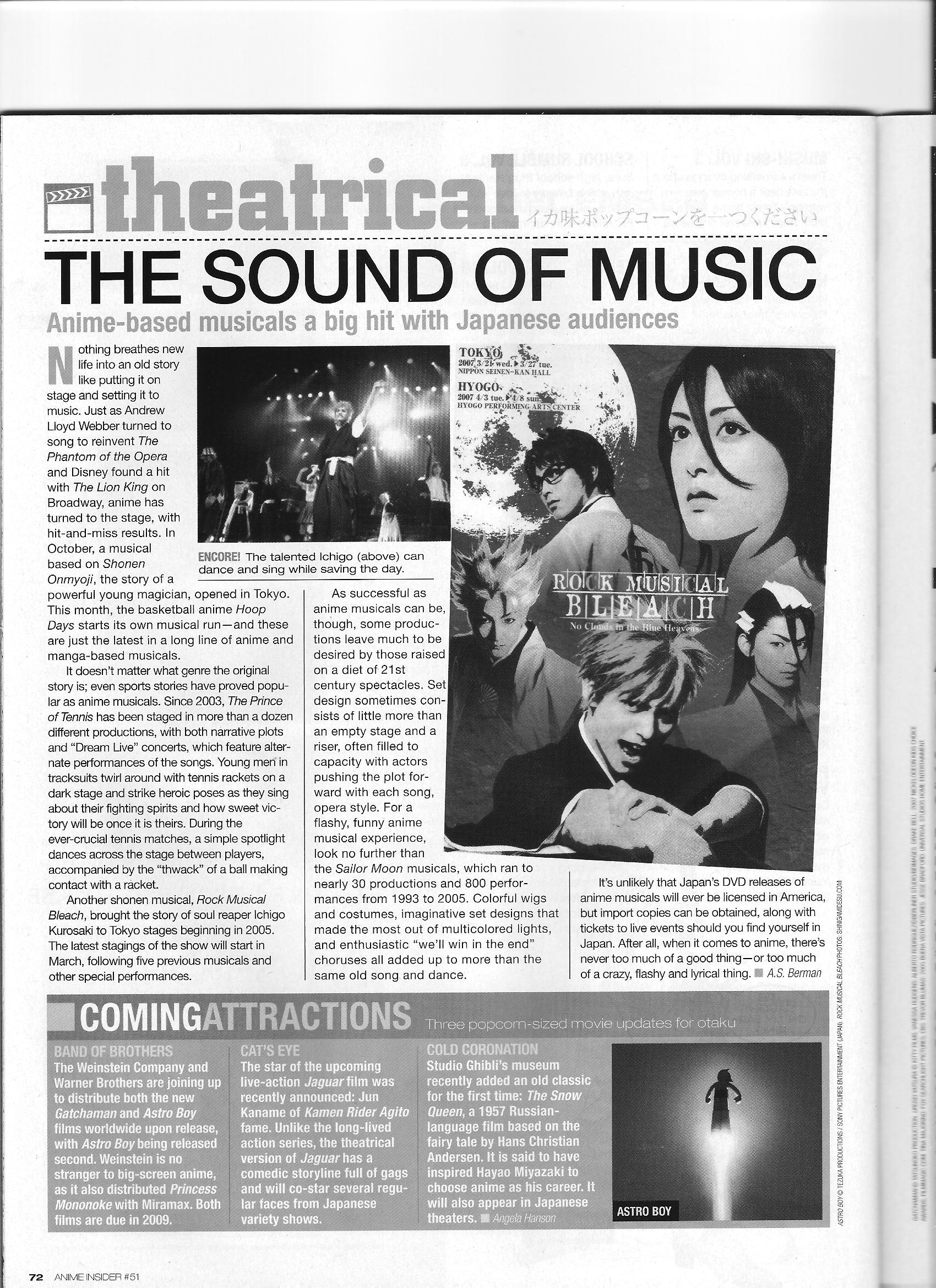 Via Anime Insider: Manga Musicals (December 2007) Posted on December 13, 2014 by torisunanohokori A short article on manga-based musical productions. Share this: Click to share on X (Opens in new window) X Click to share on Facebook (Opens in new window) Facebook Like Loading...