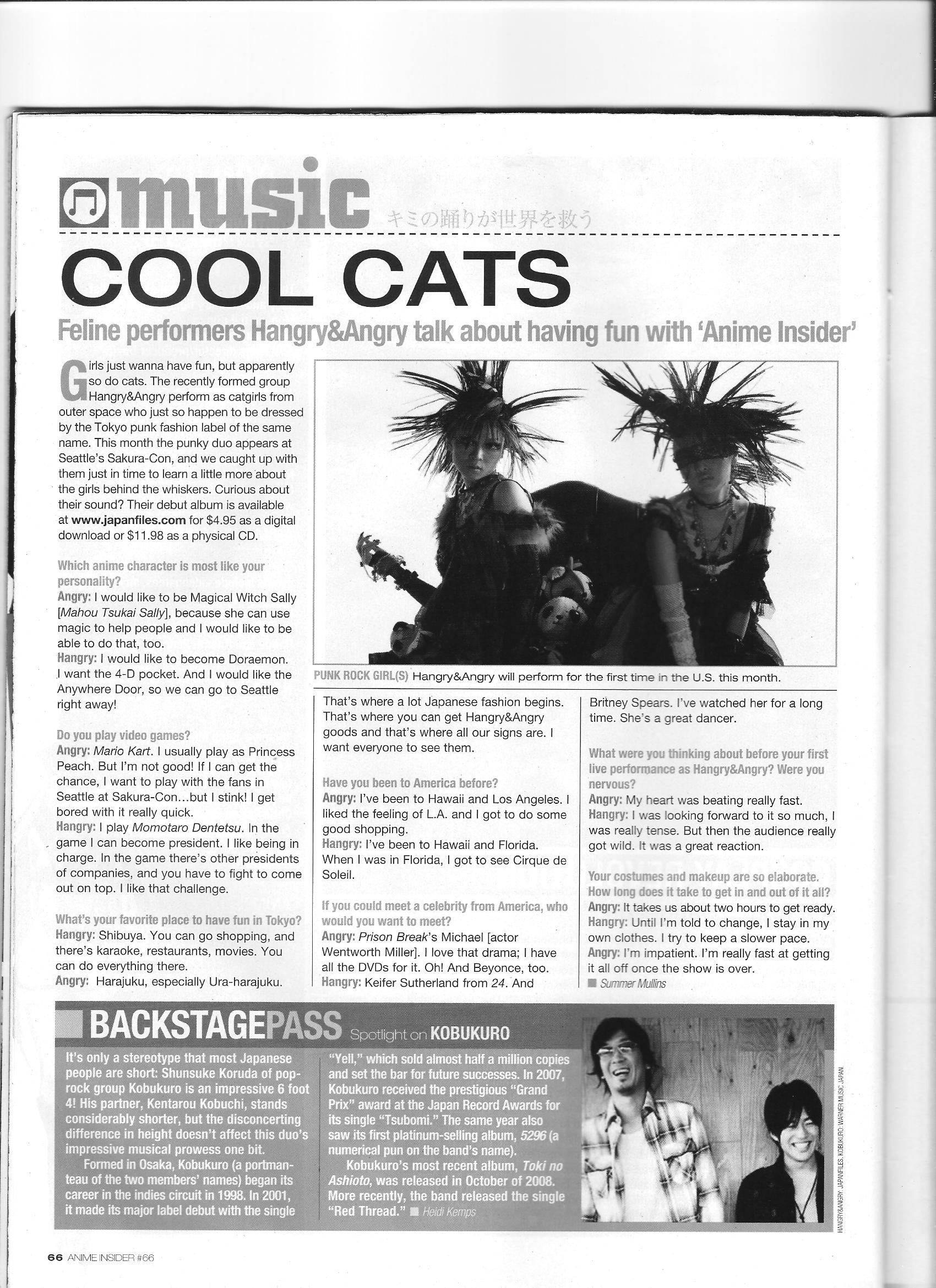 Via Anime Insider: Hangry and Angry (March 2009) Posted on January 11, 2015 by torisunanohokori A short interview with musical duo Hangry and Angry. Share this: Click to share on X (Opens in new window) X Click to share on Facebook (Opens in new window) Facebook Like Loading...