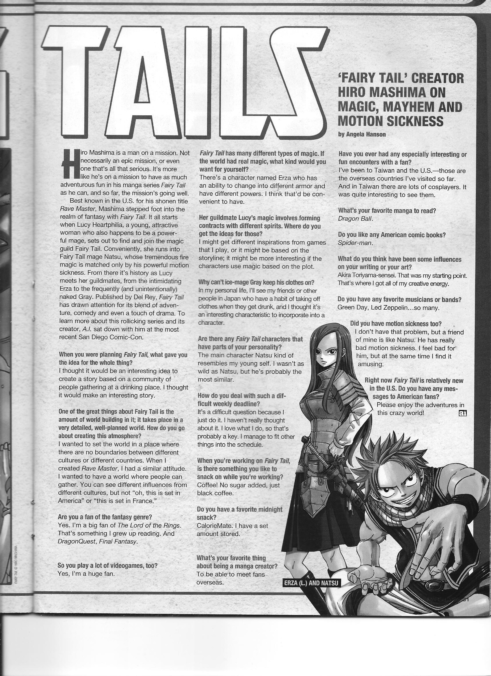 Via Anime Insider: Hiro Mashima (March 2009) Posted on January 11, 2015 by torisunanohokori An interview with manga author Hiro Mashima. Share this: Click to share on X (Opens in new window) X Click to share on Facebook (Opens in new window) Facebook Like Loading...