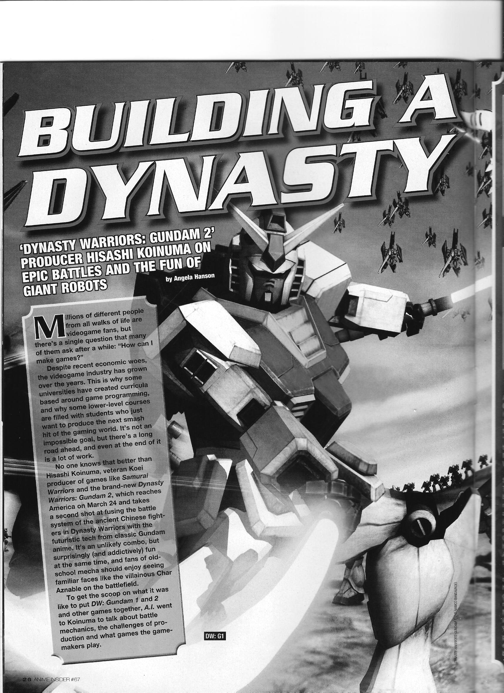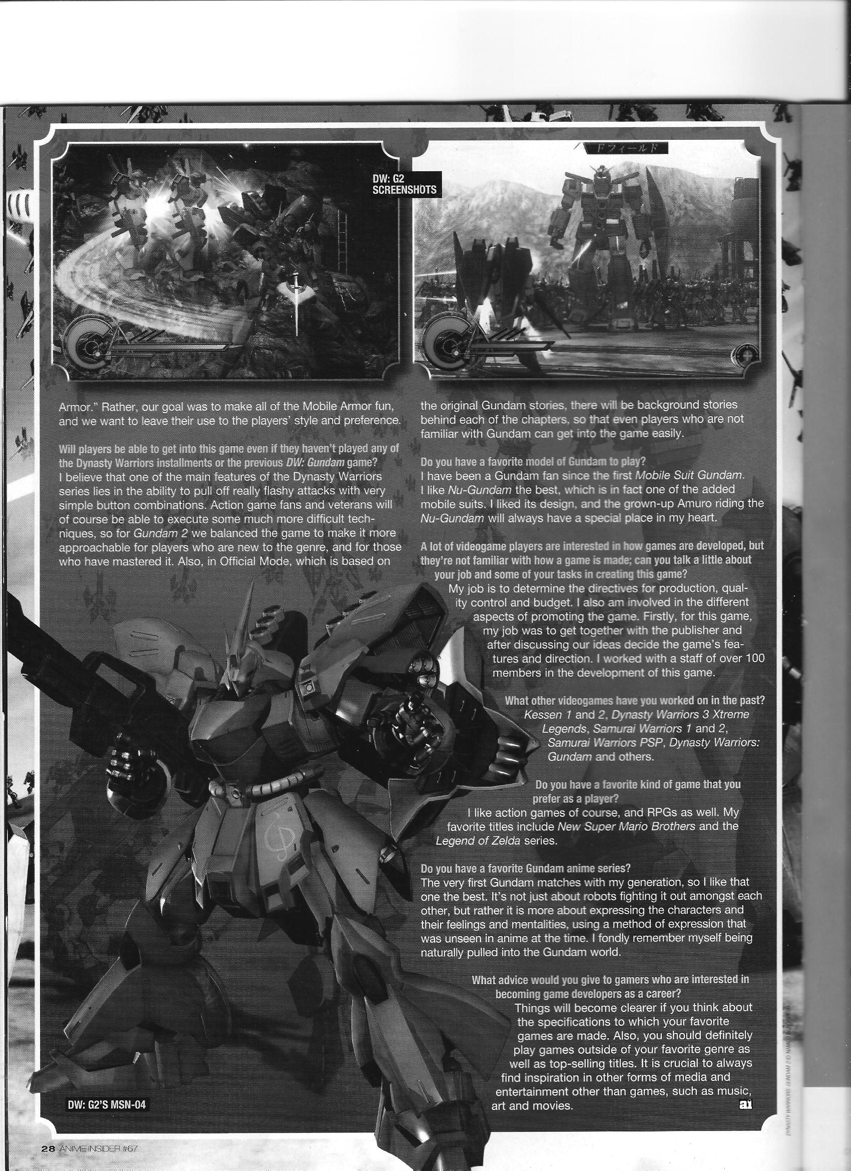 Via Anime Insider: Hisashi Koinuma (April 2009) Posted on January 11, 2015 by torisunanohokori An interview with Dynasty Warriors: Gundam 2 producer Hisashi Koinuma. Share this: Click to share on X (Opens in new window) X Click to share on Facebook (Opens in new window) Facebook Like Loading...