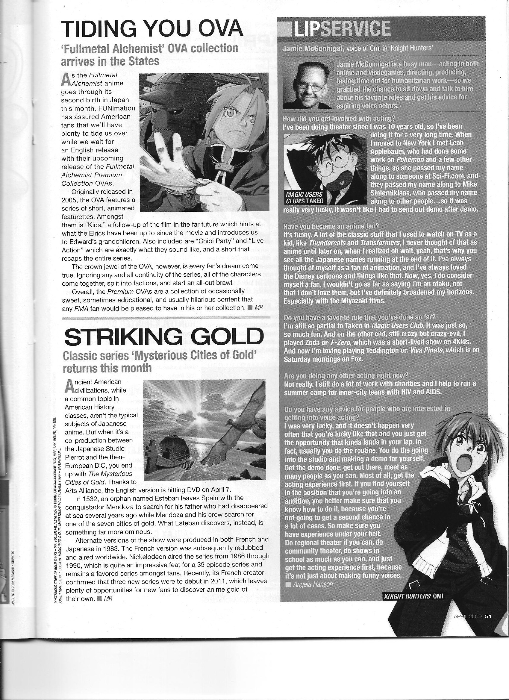 Via Anime Insider: Jamie McGonnigal (April 2009) Posted on January 11, 2015 by torisunanohokori A short interview with US VA Jamie McGonnigal. Share this: Click to share on X (Opens in new window) X Click to share on Facebook (Opens in new window) Facebook Like Loading...