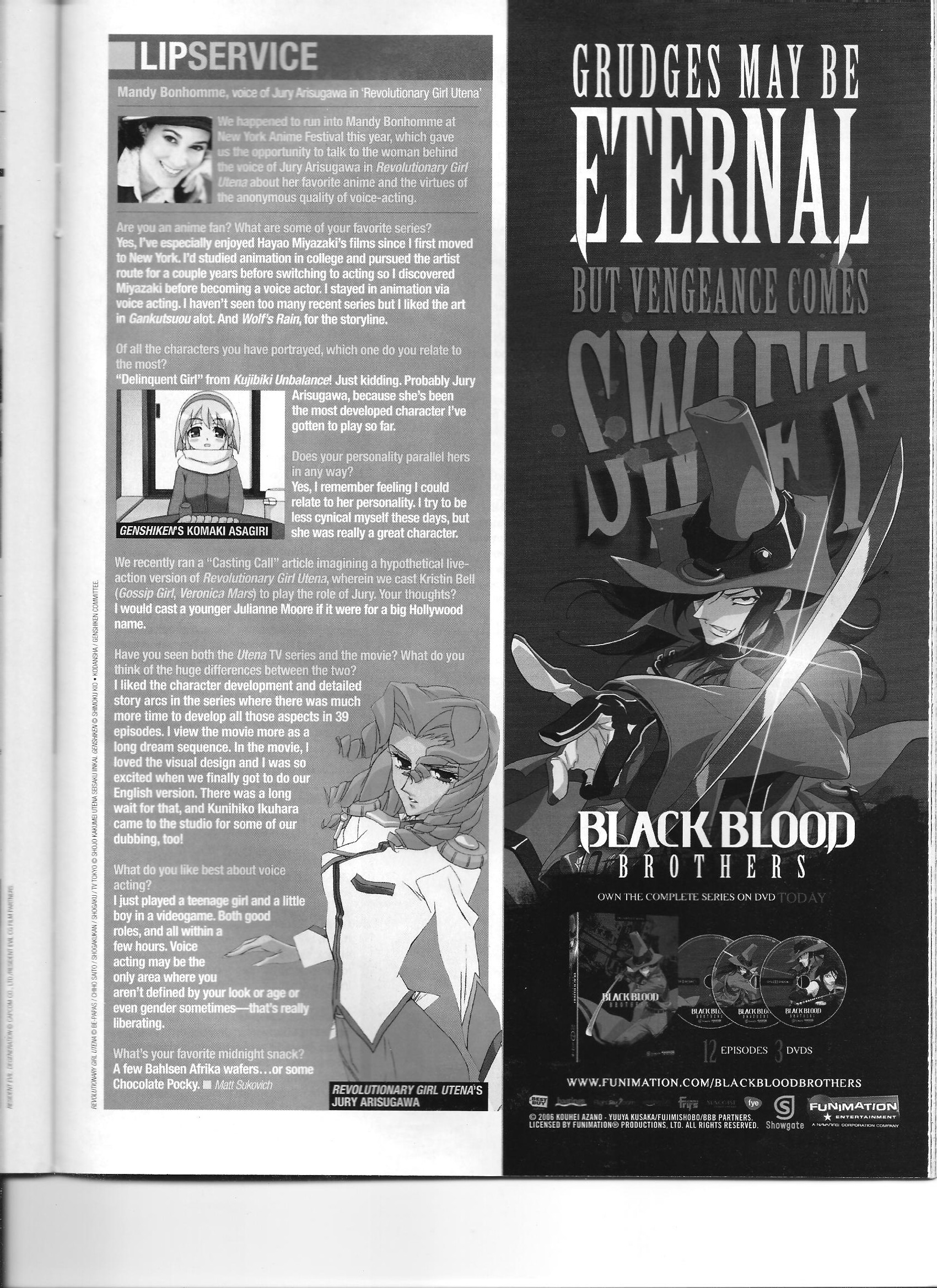 Via Anime Insider: Mandy Bonhomme (December 2008) Posted on January 11, 2015 by torisunanohokori A short interview with US VA Mandy Bonhomme. Share this: Click to share on X (Opens in new window) X Click to share on Facebook (Opens in new window) Facebook Like Loading...