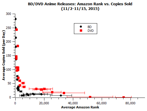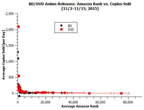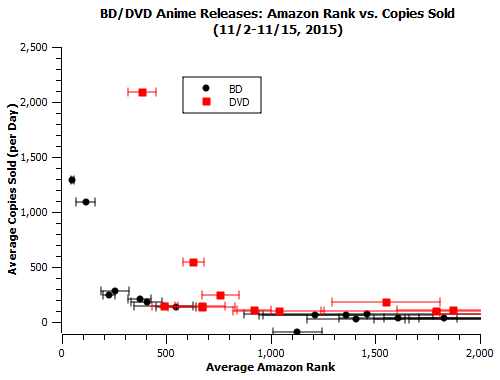 This big separation happened in the most 11/9-11/15 week of data, when the “DVD” edition sold 1029 copies while the “BD” edition sold 7663, a factor of 7 difference. By contrast, the previous week had DVDs selling 14k and BDs selling 9k.