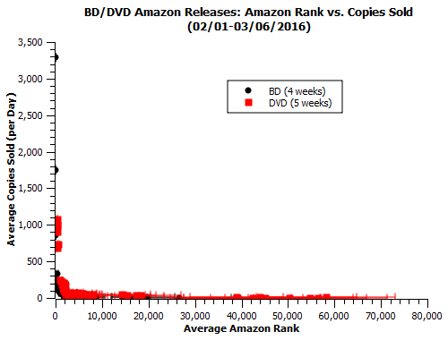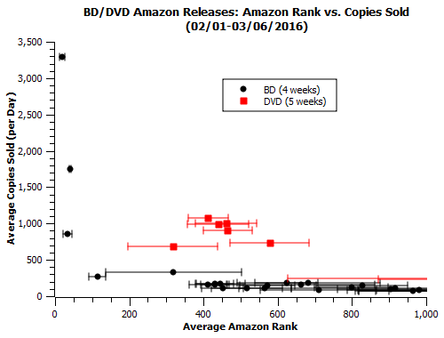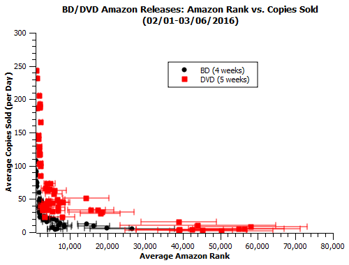 The average of the average of ranks is #41 and the average amount of copies sold per day for all of the releases is 1900. There’s a slight extension, *maybe* accurate to about a factor of two. You see something going into ranks below that, and you’re looking at uncharted territory. The values of top ranks vary heavily depending on the competition.